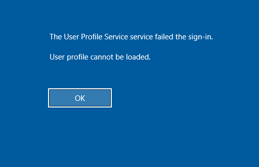 The User Profile Service service failed the sign-in. User profile cannot be loaded.